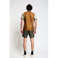 Molto elegante  e grintoso l'abbinamento di colori tabacco, verde sottobosco e il tocco del giallo fluo.